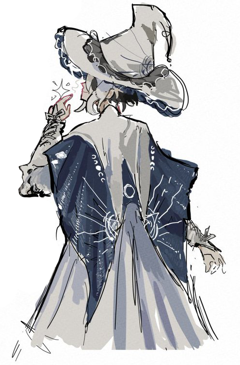 At the top of the grand staircase, there are some faces(?) that might be familiar to a few of you. The Mixer, the Weaver, the Candlemaker, the Jeweler, and the Guardian—the Guardian stands at the center of their formation, flanked by the others.. Each one of Their many, many hands shifts, holding out one index finger. One. Just one.